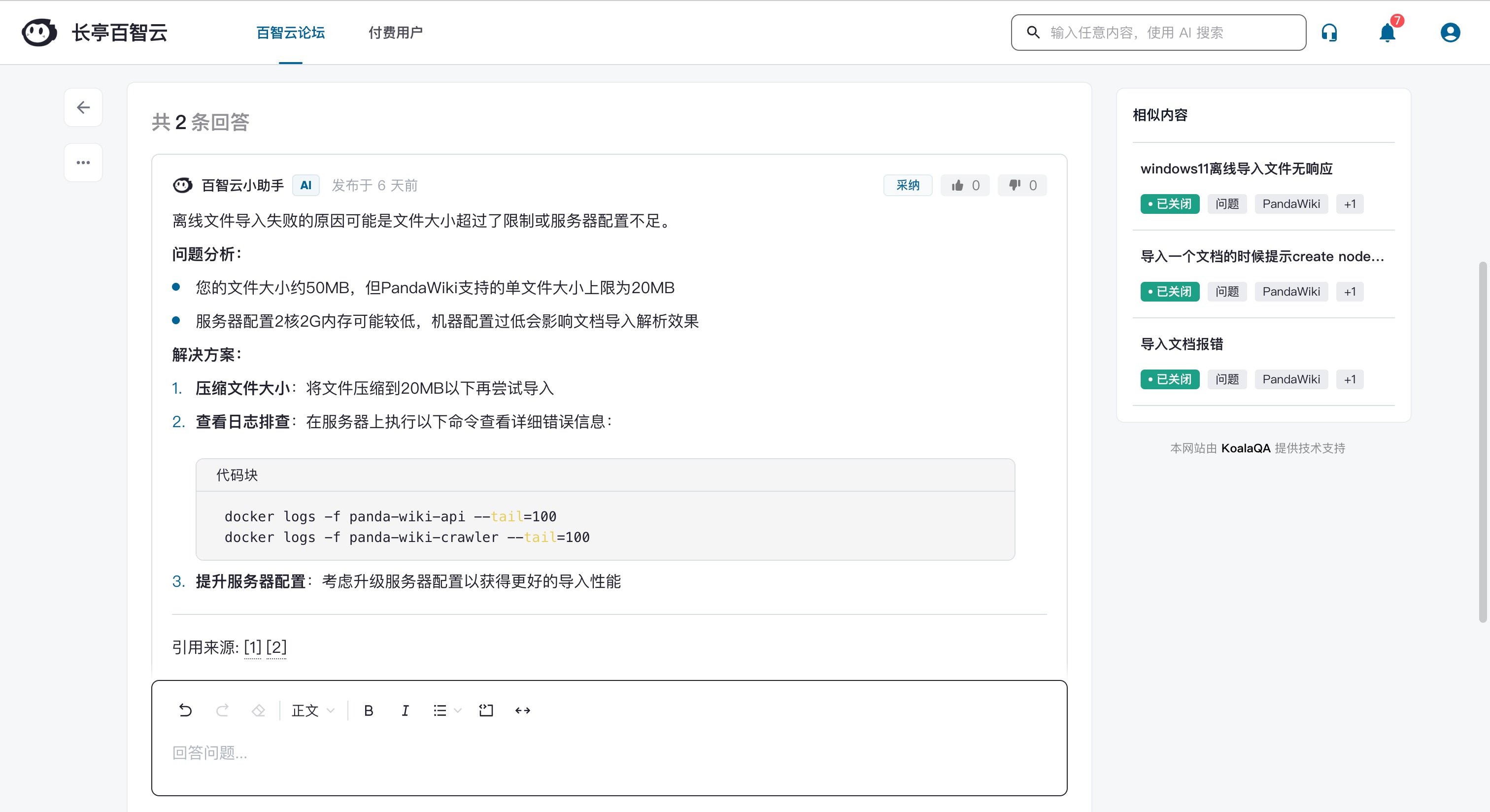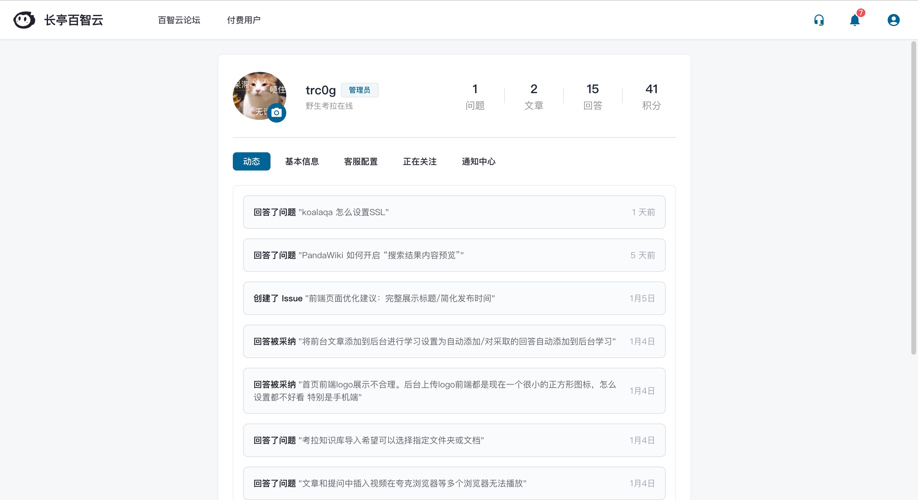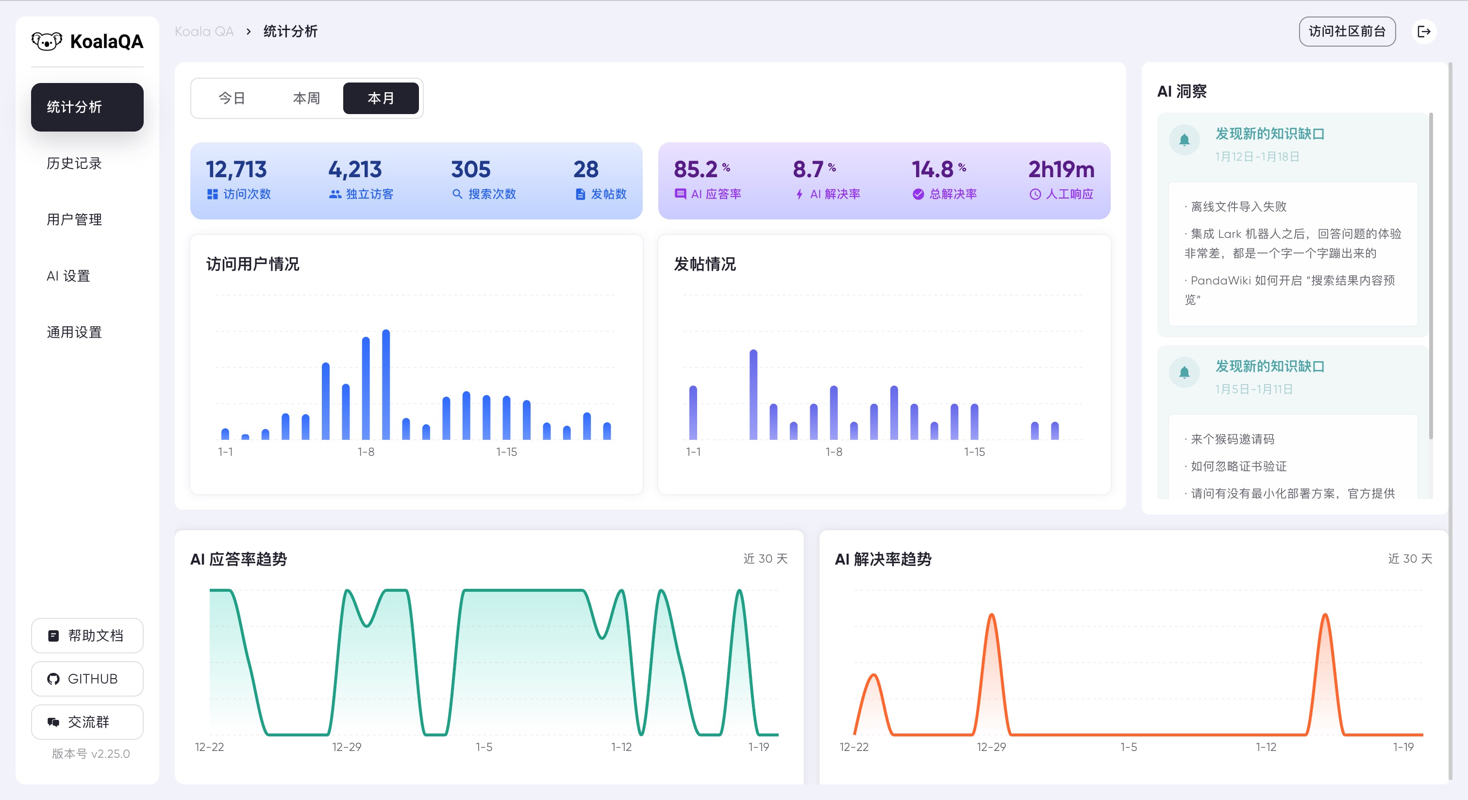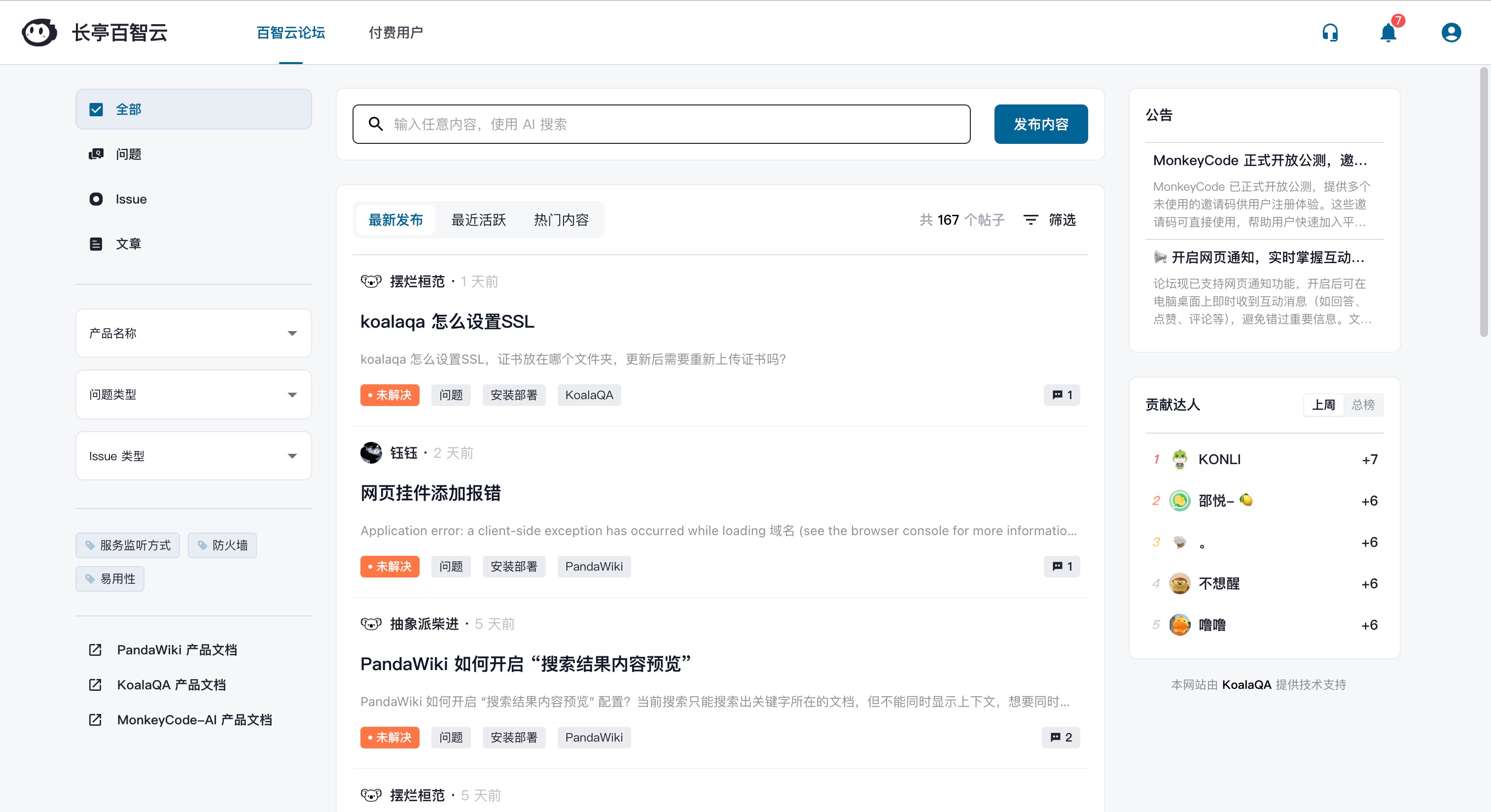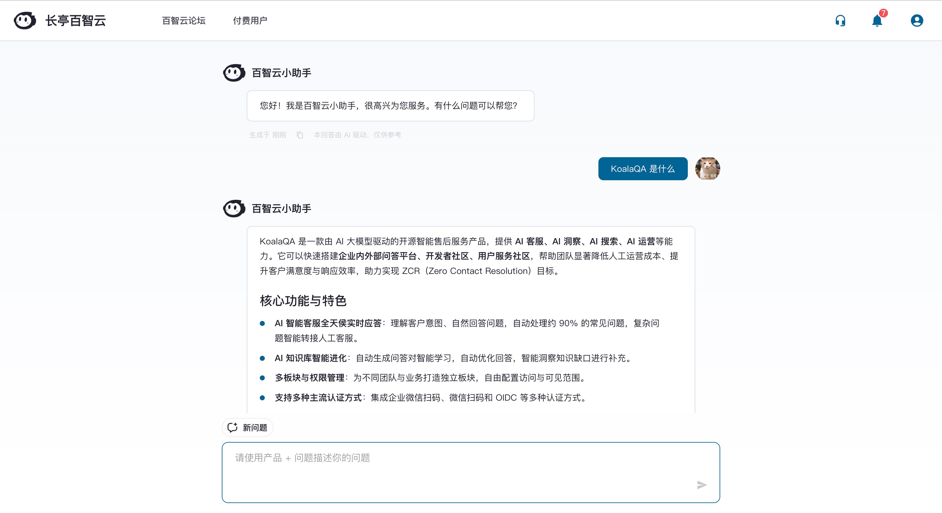 AI 大模型驱动的开源智能售后产品,提供 AI 客服、AI 洞察、AI 运营等能力,可以帮助搭建企业内外部问答平台、开发者社区、用户服务社区。